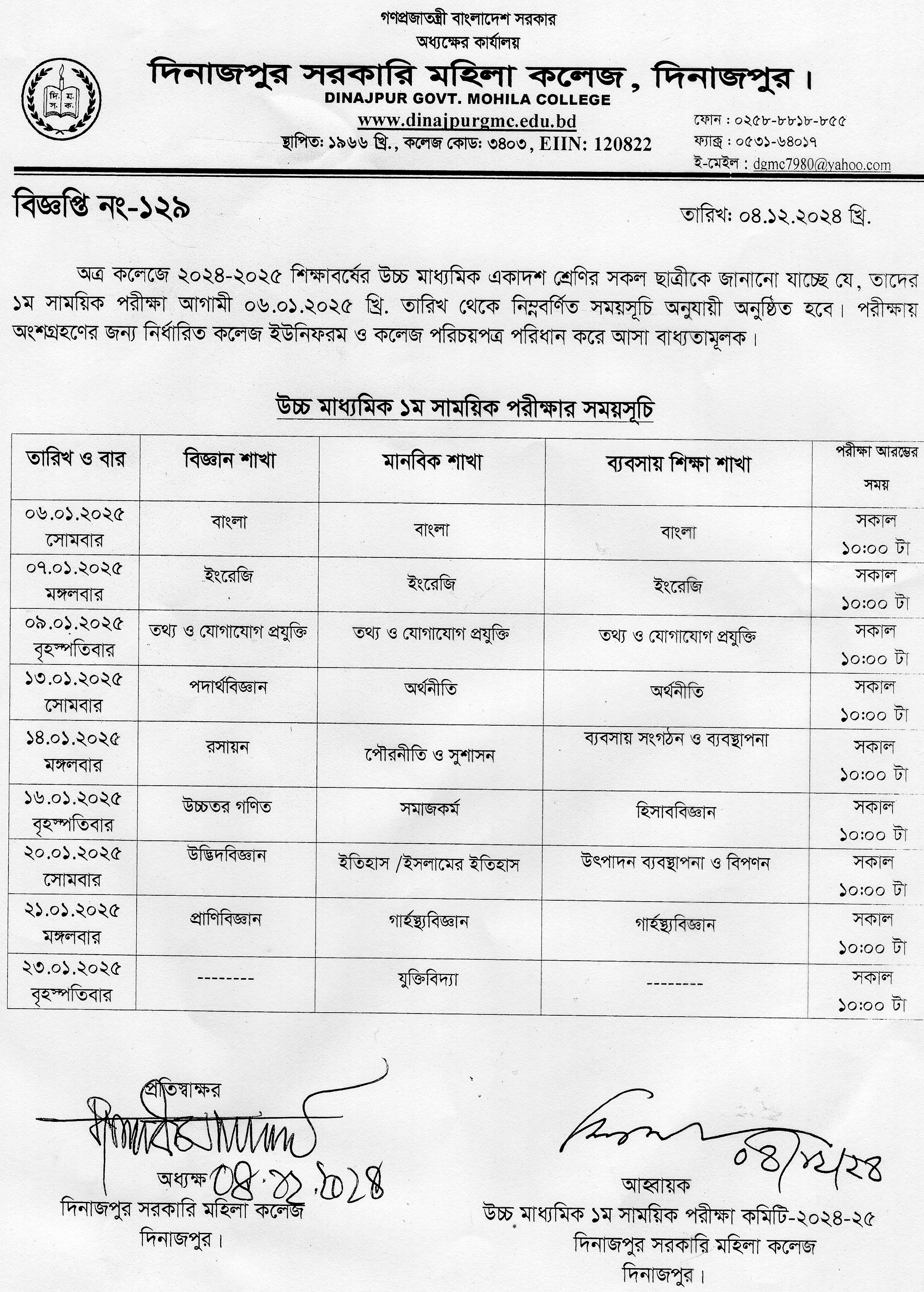 উচ্চমাধ্যমিক দ্বিতীয় বর্ষে ভর্তির নোটিশ (২০২৪-২০২৫ শিক্ষাবর্ষ)