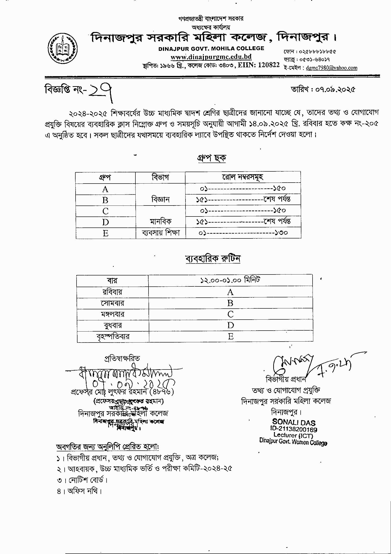 ২০২৫-২০২৬ শিক্ষাবর্ষে উচ্চ মাধ্যমিক ভর্তি বিজ্ঞপ্তি