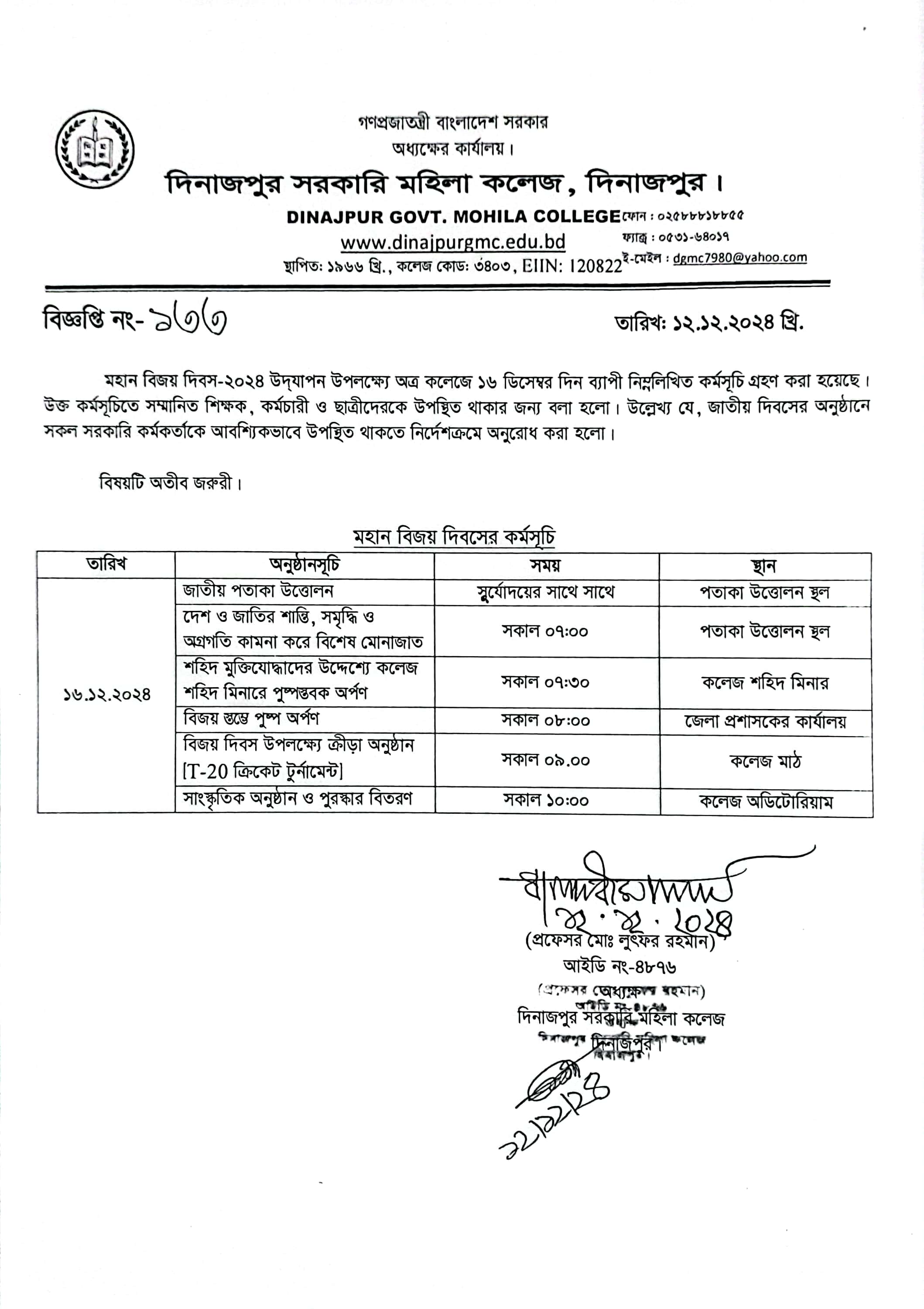 মহান বিজয় দিবস-2024 উদযাপন