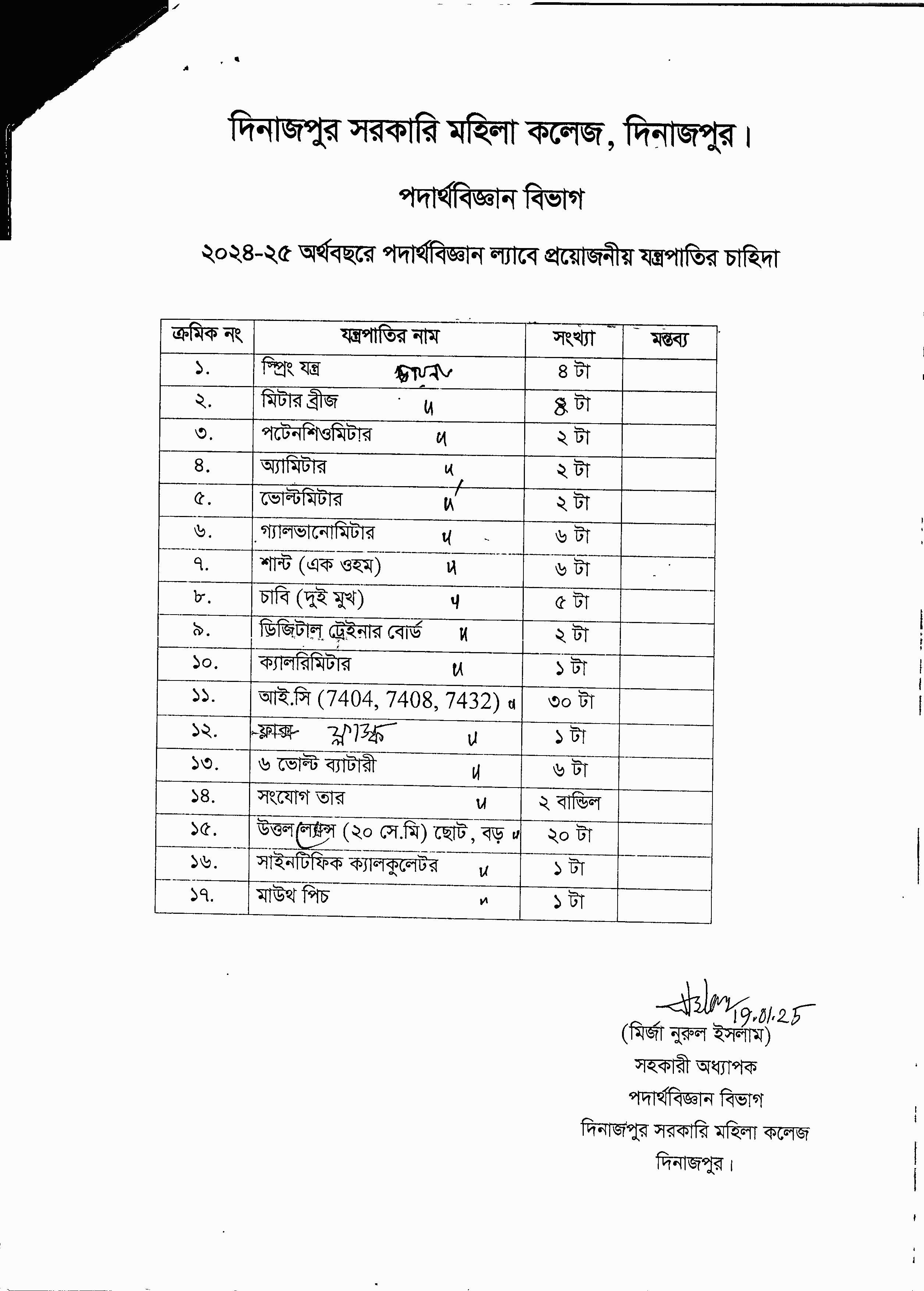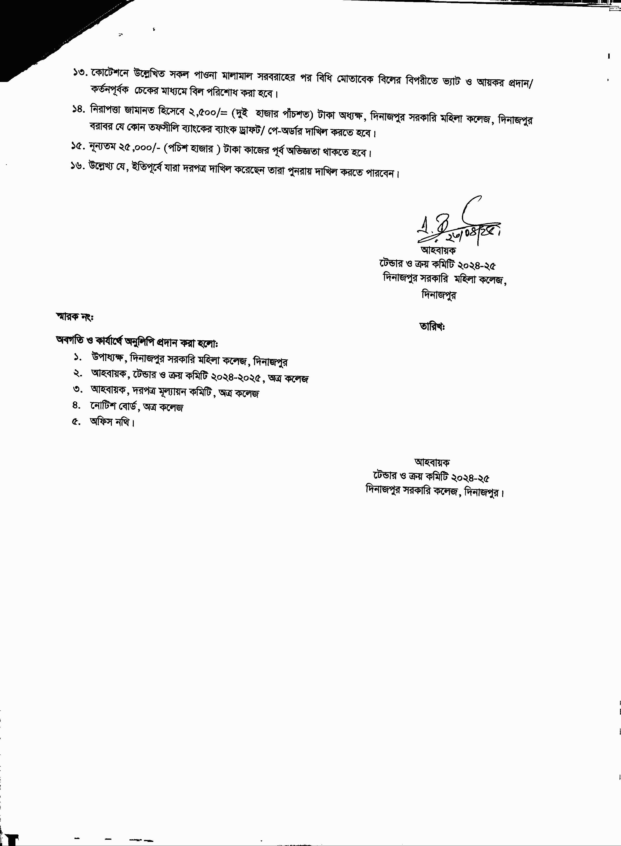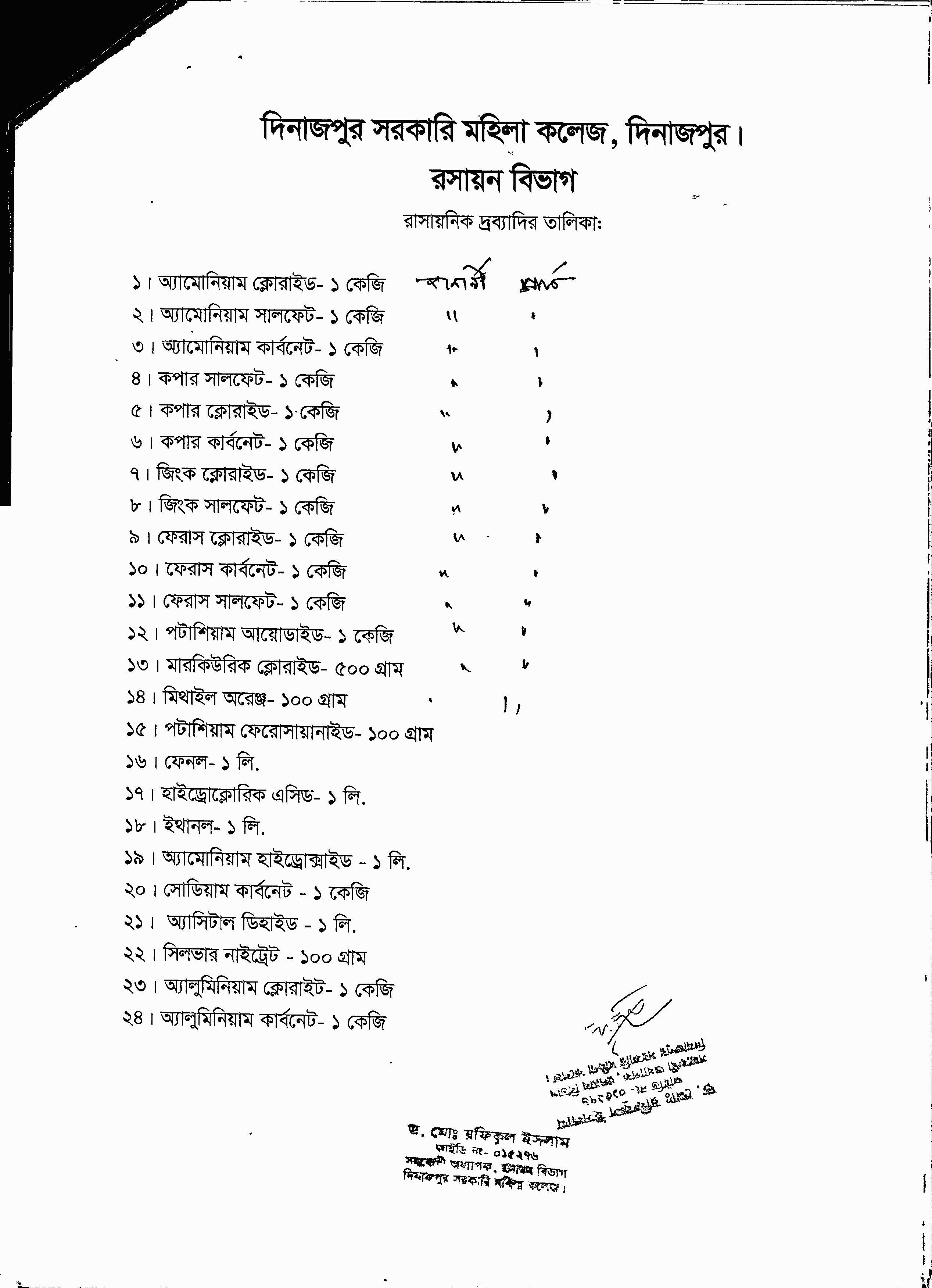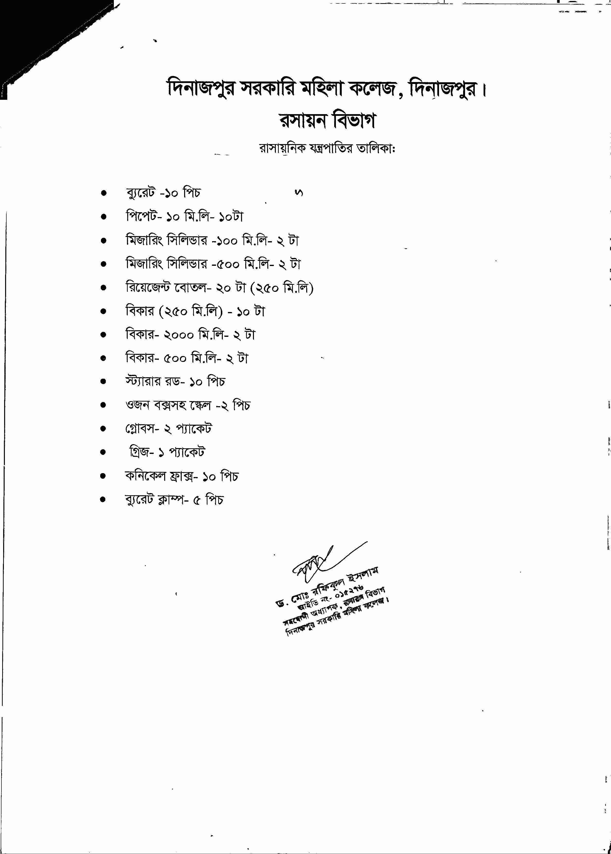 জনাব মো রফিকুল ইসলাম বিভাগীয় অনাপত্তি ফরম (এনওসি)