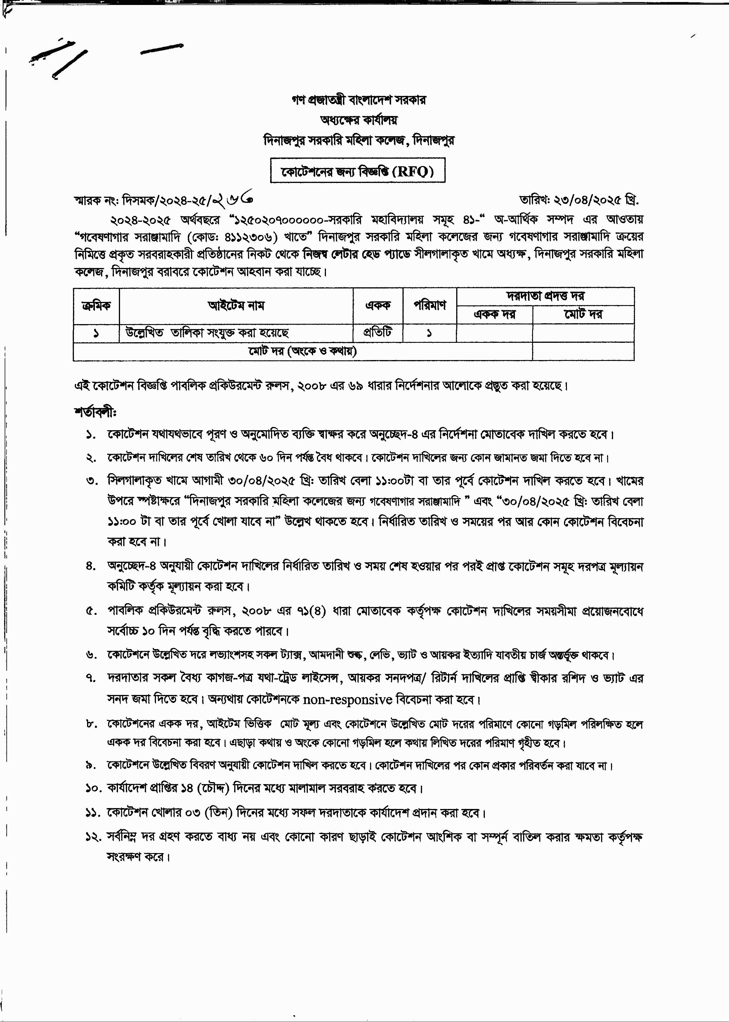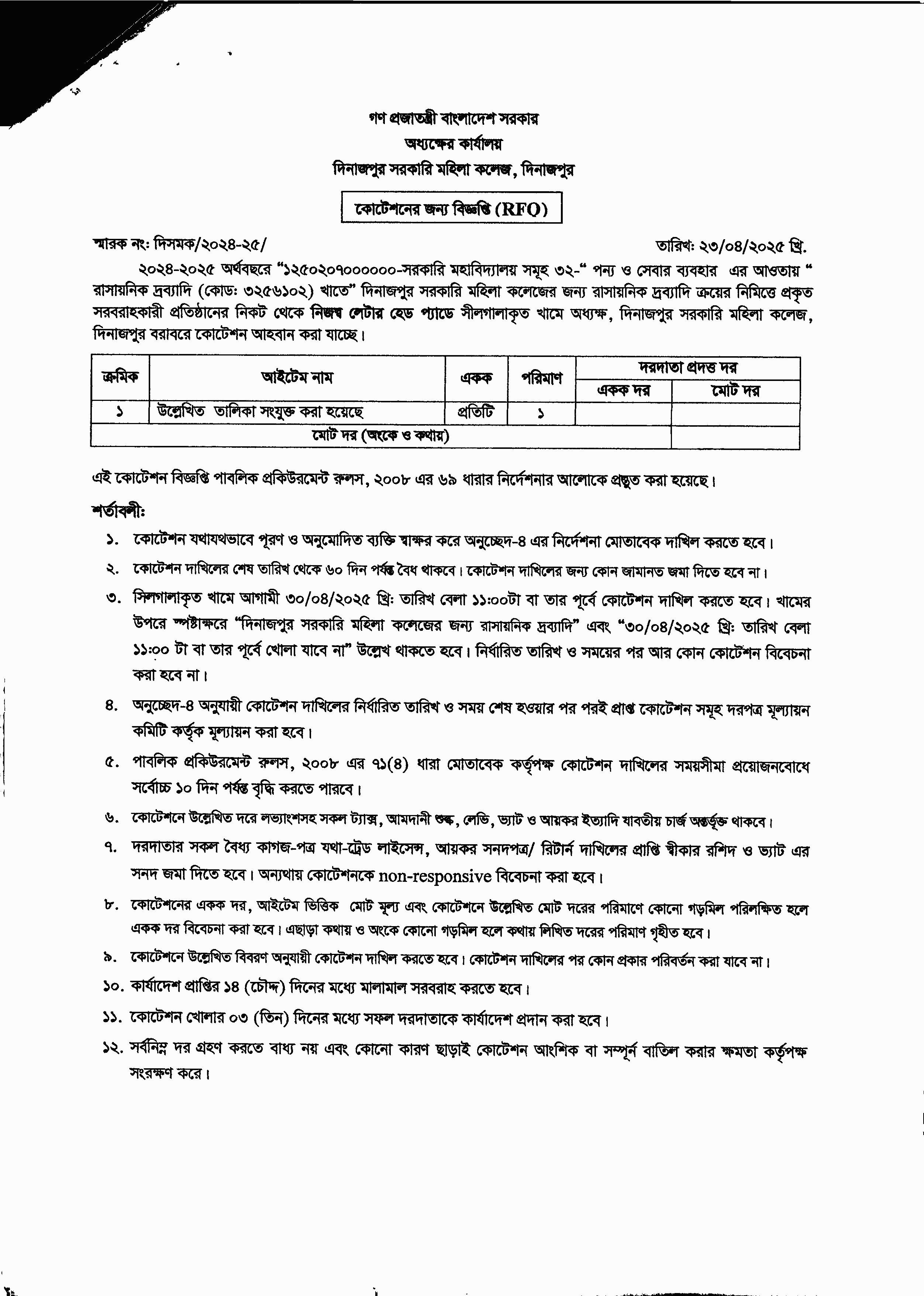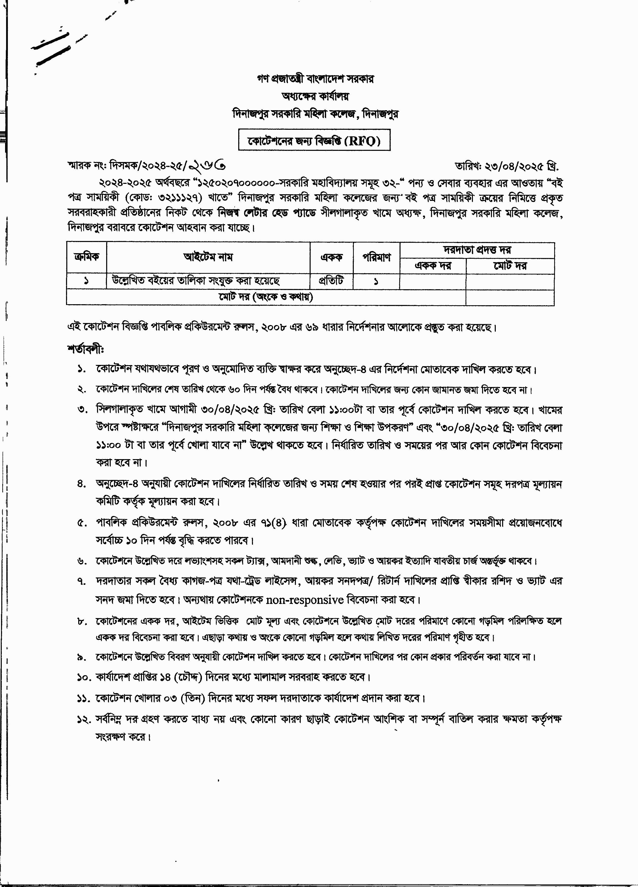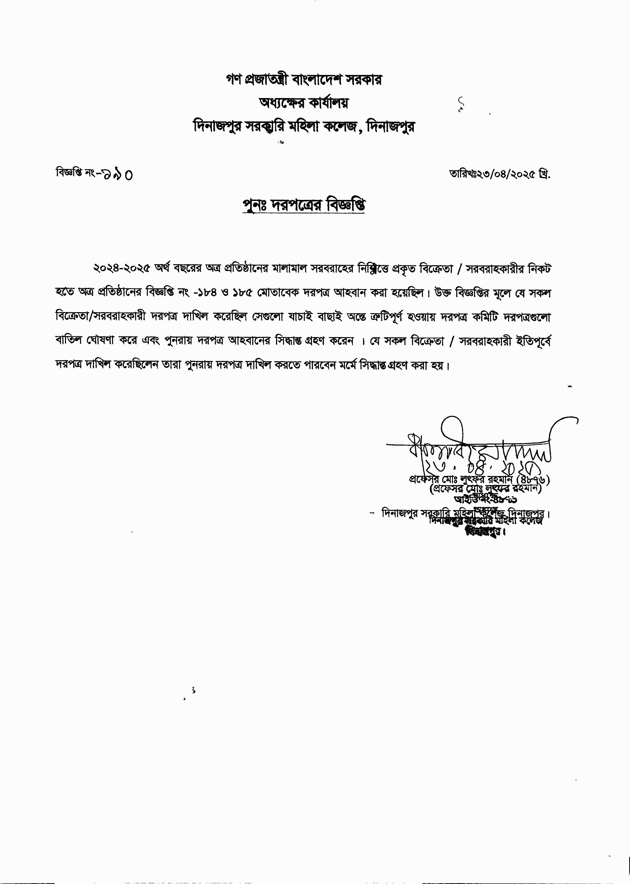 পুনঃ দরপত্রের বিজ্ঞপ্তি