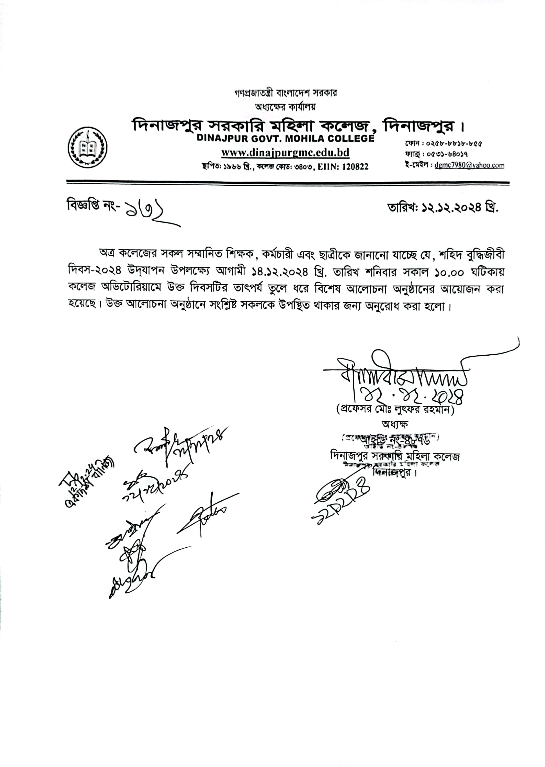 উচ্চমাধ্যমিক দ্বিতীয় বর্ষে ভর্তির নোটিশ (২০২৪-২০২৫ শিক্ষাবর্ষ)
