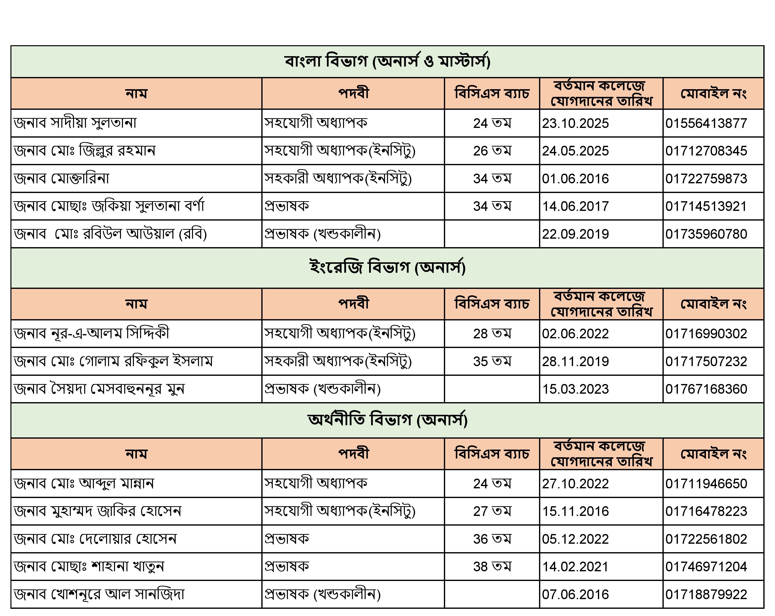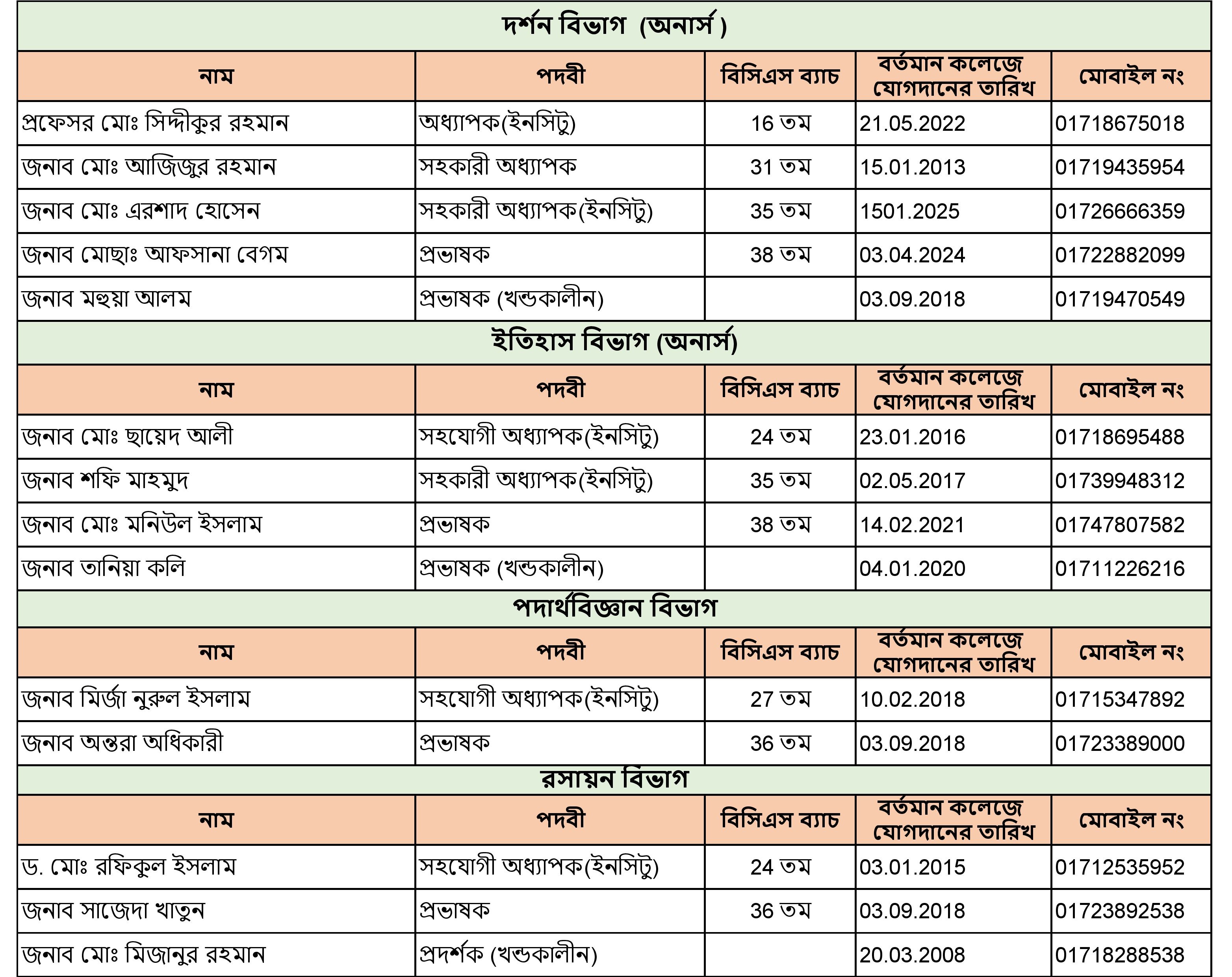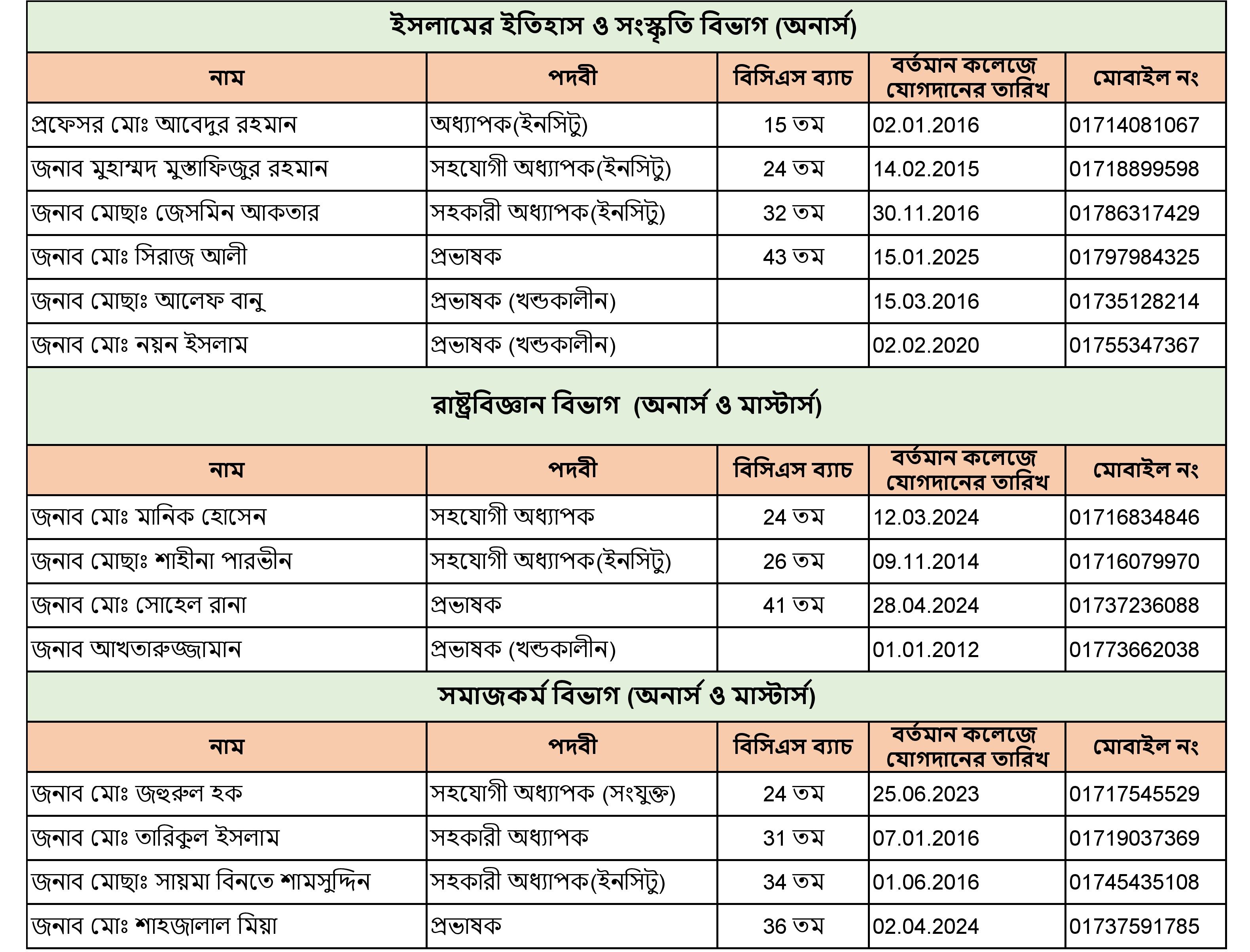 জনাব মো রফিকুল ইসলাম বিভাগীয় অনাপত্তি ফরম (এনওসি)